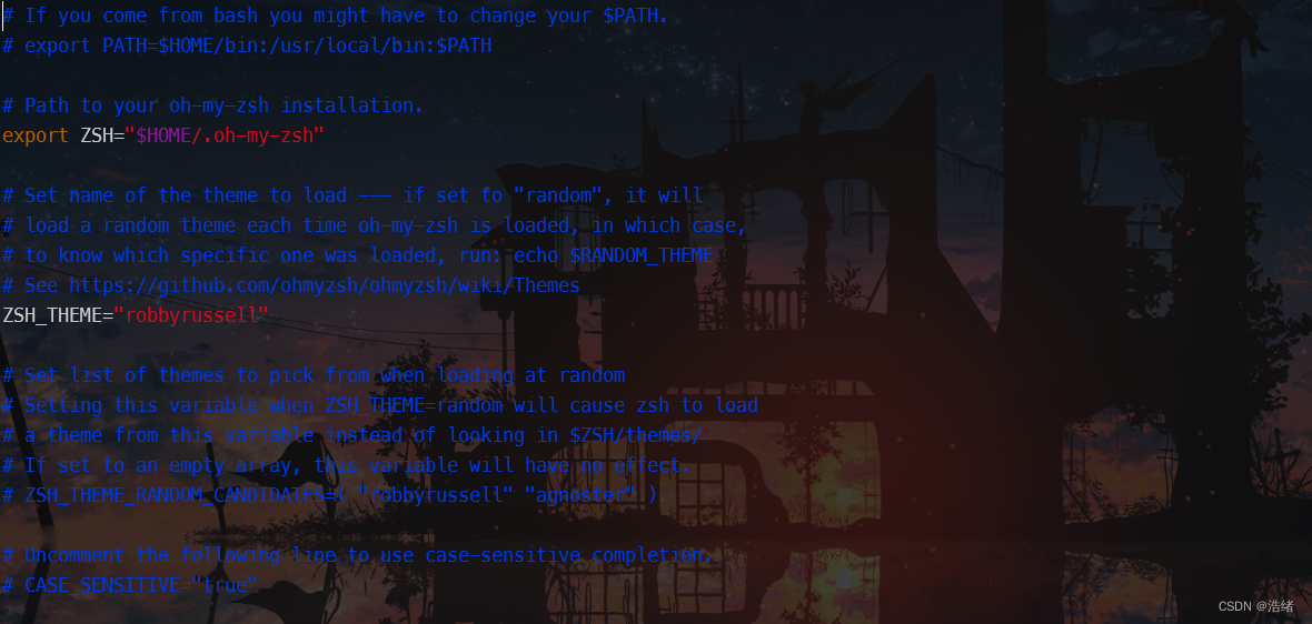 打开~/.zshrc文件,编辑其中的ZSH_THEME选项,这个选项默认把存储路径定在~/.oh-my-zsh/themes文件夹中,直接把对应的主题的名字修改进去就可以了,可以是在下一层文件夹中。
