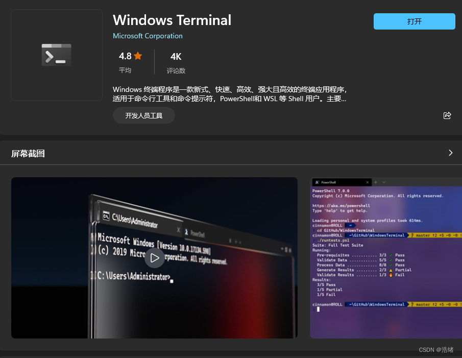 首先在微软自带的应用商店里安装新版PowerShell和新的终端控制台。