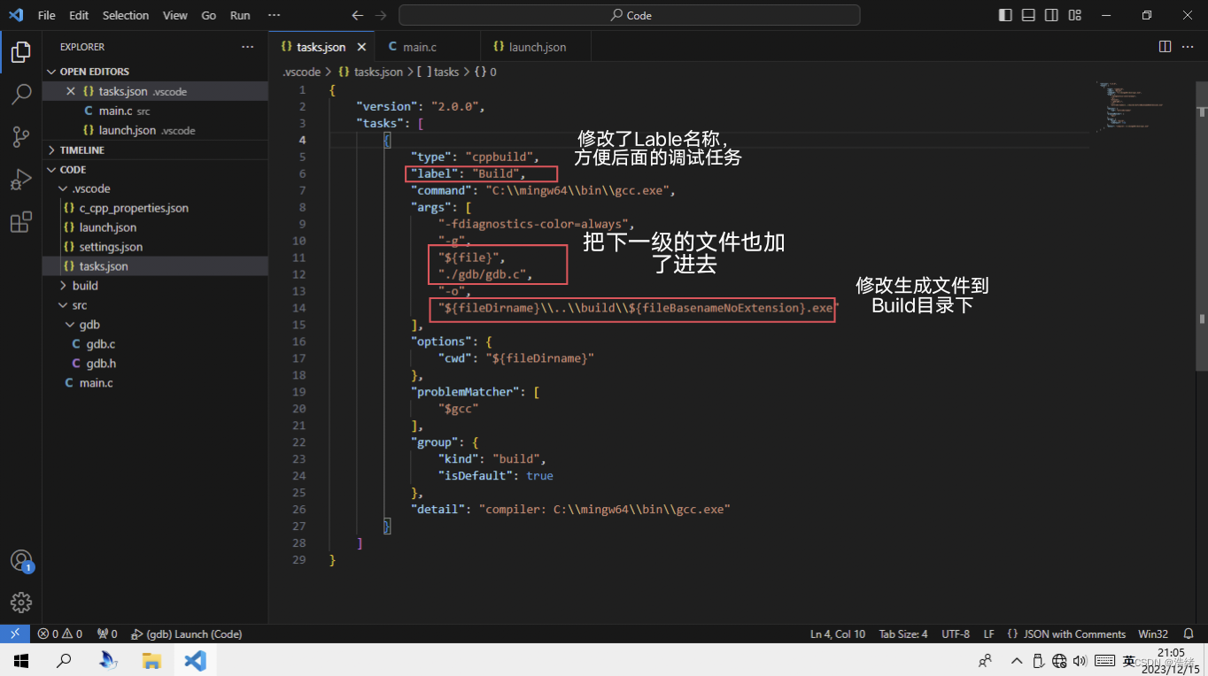 VSCode实际上是根据.vscode文件夹下的tasks.json和launch.json两个文件进行自动配置,生成和调试等等任务的。