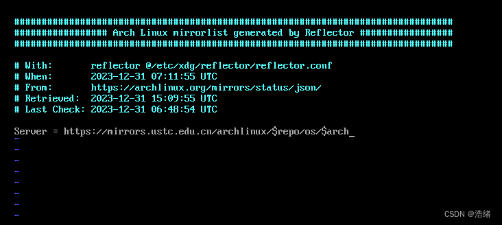 首先使用Vim编辑一下pacman的镜像。