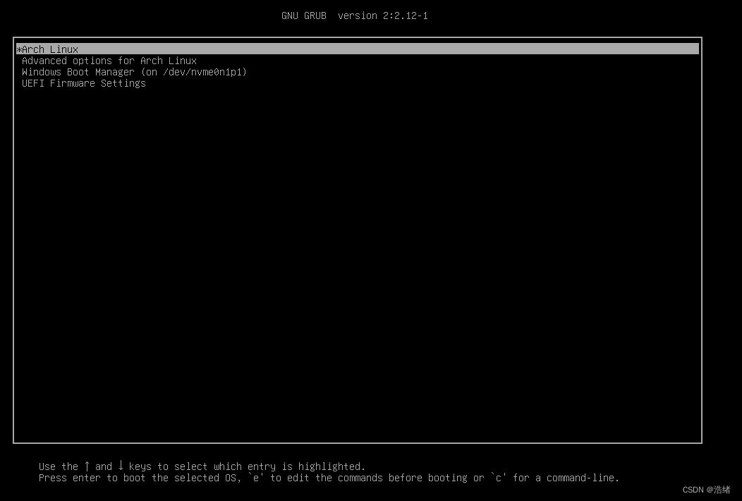 选中上图GRUB第一个选项即可进入Arch: