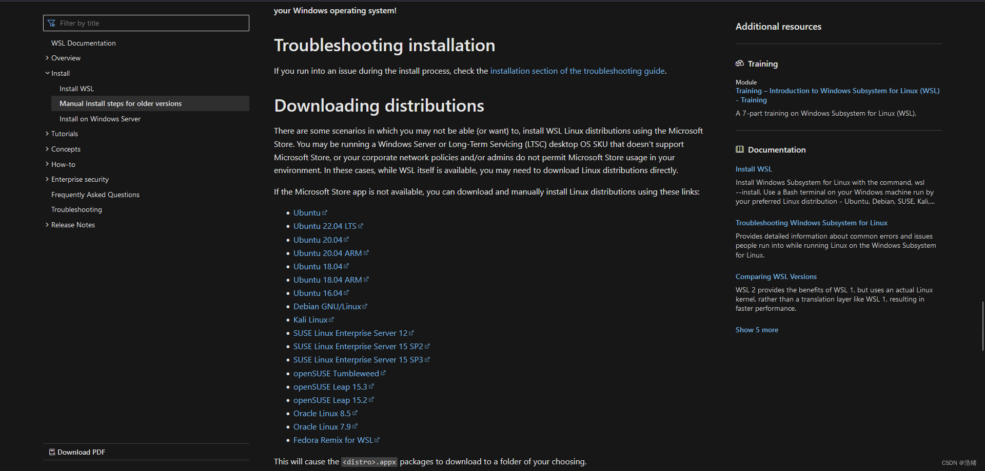 这个方法我推荐安装Debian,因为Debian的WSL特别小。